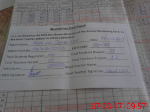 | Certified that this School was Inspected by the Undersigned MEA/DMO Today and the Information Stated Above is as Per Record. | |||||