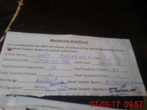 | EMIS Code: 36120234 | Name of School: GMPS BABAR WALA (KALO WALA) | |||