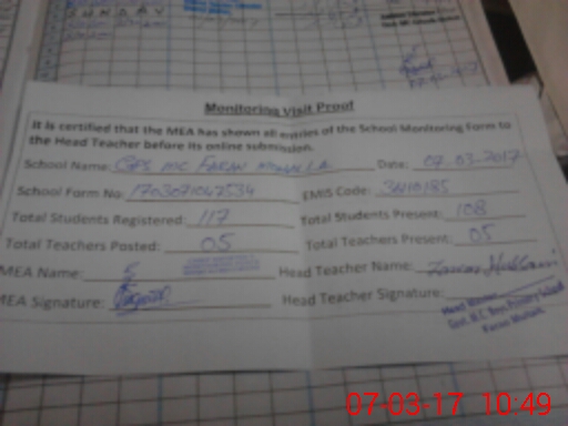 | EMIS Code: 36110185 | Name of School: GPS MC FARAAN NEAR KHONI BURJ MULTAN | |||