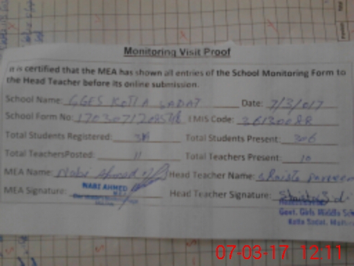 | EMIS Code: 36130088 | Name of School: GGES KOTLA SADAT NEAR SADIQ ABAD MULTAN | |||