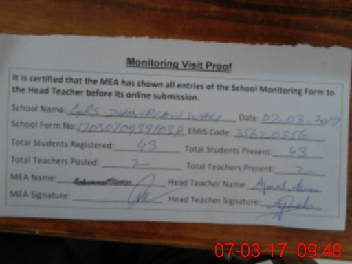 | EMIS Code: 35620356 | Name of School: GPS JHANDIAN WALI 170/RB | |||