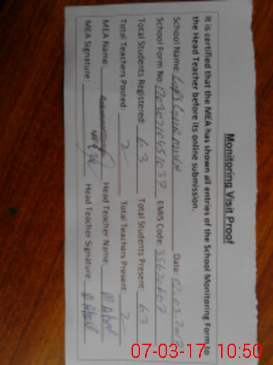 | Certified that this School was Inspected by the Undersigned MEA/DMO Today and the Information Stated Above is as Per Record. | |||||