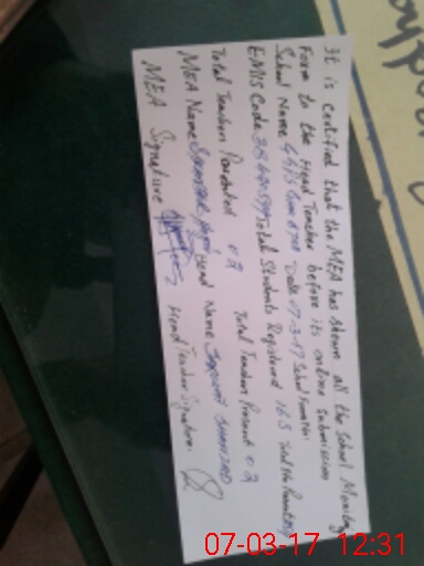 | Certified that this School was Inspected by the Undersigned MEA/DMO Today and the Information Stated Above is as Per Record. | |||||