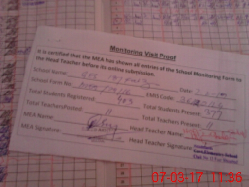 | Certified that this School was Inspected by the Undersigned MEA/DMO Today and the Information Stated Above is as Per Record. | |||||
