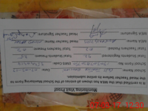 | Attendance Register | Head Teacher | MEA with School | Visit Proof |
