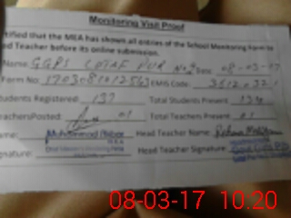 | Attendance Register | Head Teacher | MEA with School | Visit Proof |