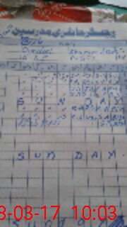 | CNIC | Full Name | Designation | R/C | Absence During Last Calender Month |
