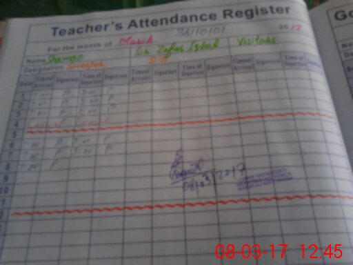 | Total no. of Classrooms: 17 No. of Classrooms Used for Teaching: 17 No. of Classrooms Storing Old Furniture, FTBs, etc: 0Comments if Any: FTBS SHORTAGE LOCALLY ARRANGED HEADMISTRESS HINA SHAFIQ IS SHOWN ON MATERNIT LEAVE FROM 27 2 2017 TO 27 5 2017 BUT SANCTIONED APPLICATION IS NOT AVAILABLE REHANA KOUSAR PST IS ON EX PAKISTAN LEAVE FROM 17 2 2 |