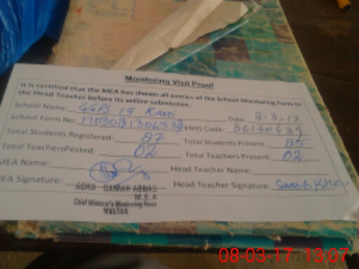 | EMIS Code: 36130439 | Name of School: GGPS 19 KASSI P/O M JHOKE LASHKAR PUR MUKHDOOM RASHED | |||