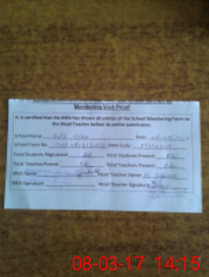 | Attendance Register | Head Teacher | MEA with School | Visit Proof |