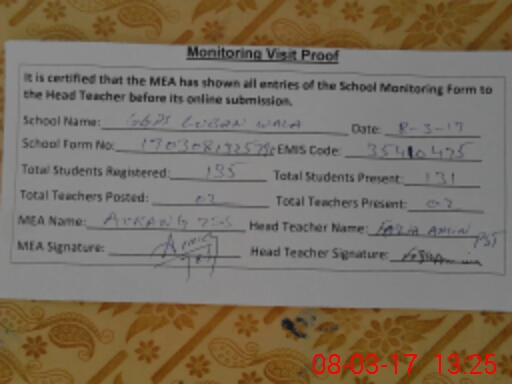| EMIS Code: 35410475 | Name of School: GGPS LUBBAN WALA | |||