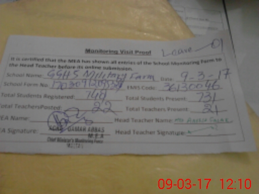 | EMIS Code: 36130046 | Name of School: GGHS MILITARY FARM MULTAN | |||