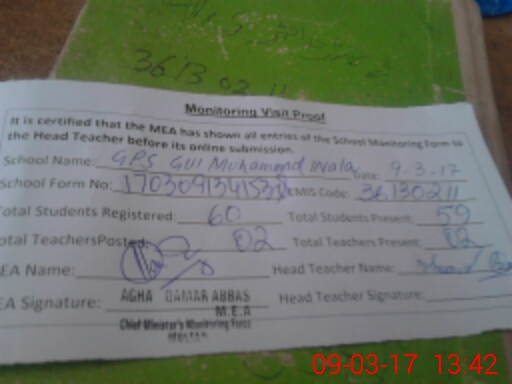 | EMIS Code: 36130211 | Name of School: GPS GUL MUHAMMAD WALA MULTAN | |||