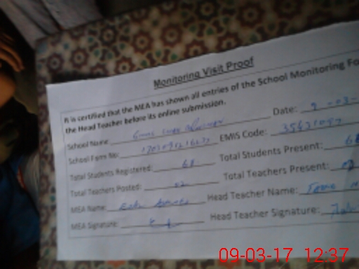 | Attendance Register | Head Teacher | MEA with School | Visit Proof |