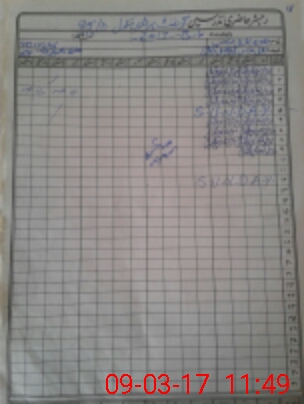 | CNIC | Full Name | Designation | R/C | Absence During Last Calender Month |