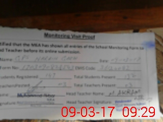 | Attendance Register | Head Teacher | MEA with School | Visit Proof |