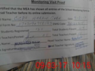 | Attendance Register | Head Teacher | MEA with School | Visit Proof |