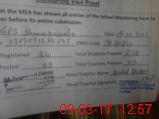 | Attendance Register | Head Teacher | MEA with School | Visit Proof |
