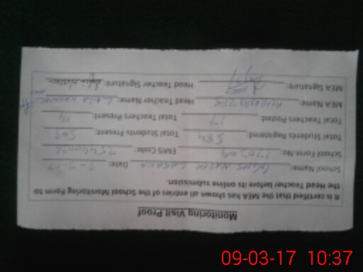 | Attendance Register | Head Teacher | MEA with School | Visit Proof |