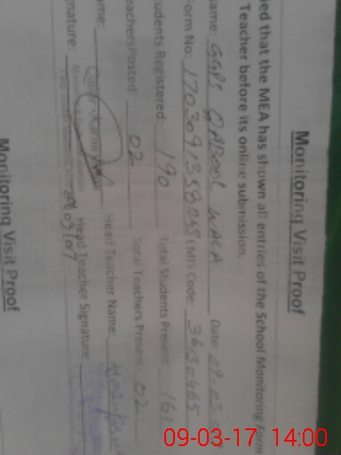 | Certified that this School was Inspected by the Undersigned MEA/DMO Today and the Information Stated Above is as Per Record. | |||||