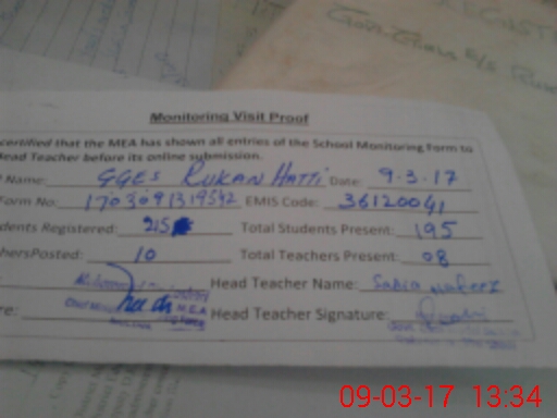 | Attendance Register | Head Teacher | MEA with School | Visit Proof |