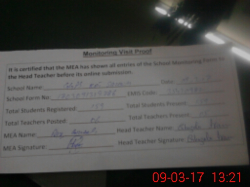 | Attendance Register | Head Teacher | MEA with School | Visit Proof |