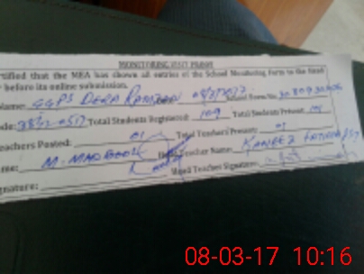 | Attendance Register | Head Teacher | MEA with School | Visit Proof |