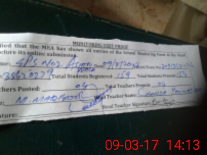| Attendance Register | Head Teacher | MEA with School | Visit Proof |