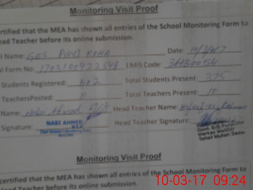 | EMIS Code: 36130054 | Name of School: GHS PUNJ KOHA MULTAN | |||