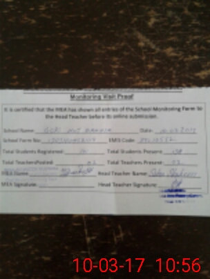 | Attendance Register | Head Teacher | MEA with School | Visit Proof |