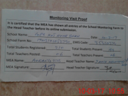 | EMIS Code: 35410374 | Name of School: GES KOT NOOR SHAH | |||