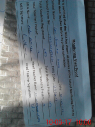 | Attendance Register | Head Teacher | MEA with School | Visit Proof |