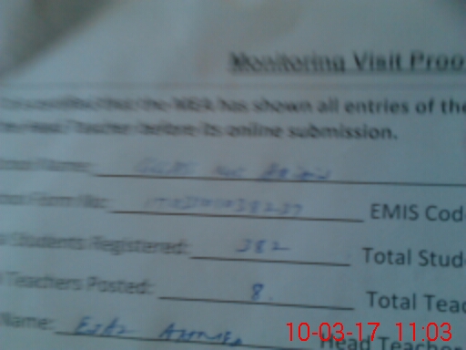 | Attendance Register | Head Teacher | MEA with School | Visit Proof |