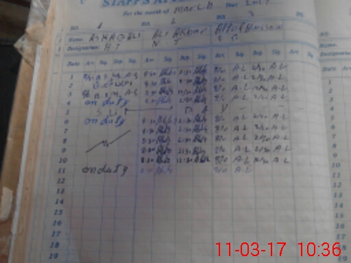 | CNIC | Full Name | Designation | R/C | Absence During Last Calender Month |