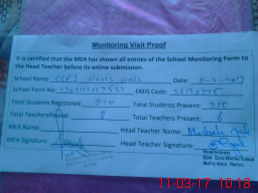 | EMIS Code: 36130775 | Name of School: GGES WARIS WALA MULTAN SADDAR | |||