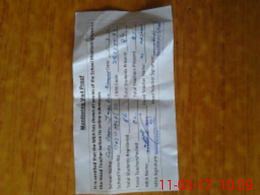 | Attendance Register | Head Teacher | MEA with School | Visit Proof |