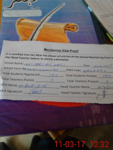 | EMIS Code: 35620592 | Name of School: GPS TARLIAWALE CHAK NO. 13/RB | |||