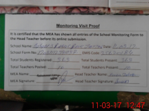 | Certified that this School was Inspected by the Undersigned MEA/DMO Today and the Information Stated Above is as Per Record. | |||||