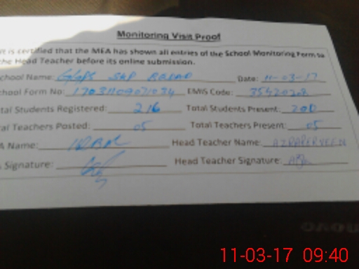 | EMIS Code: 35420208 | Name of School: GGPS SHEIKHUPURA BEDAD | |||