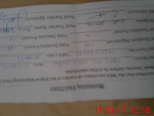 | Name: SU**** SA**** Designation: (School Headmaster's/Headmistress's) SST Phy Phone/Cell Number: 03**** |