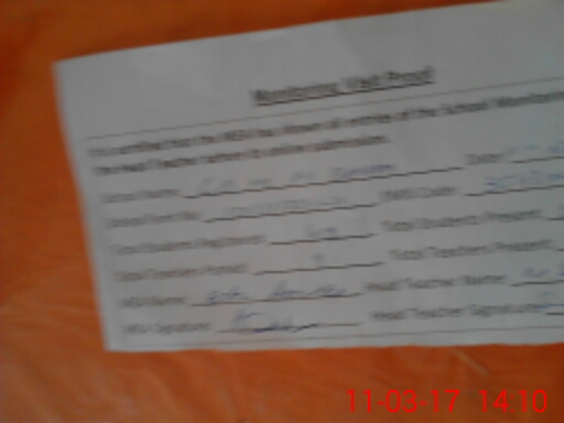 | Attendance Register | Head Teacher | MEA with School | Visit Proof |