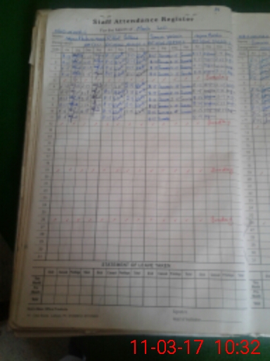 | CNIC | Full Name | Designation | R/C | Absence During Last Calender Month |