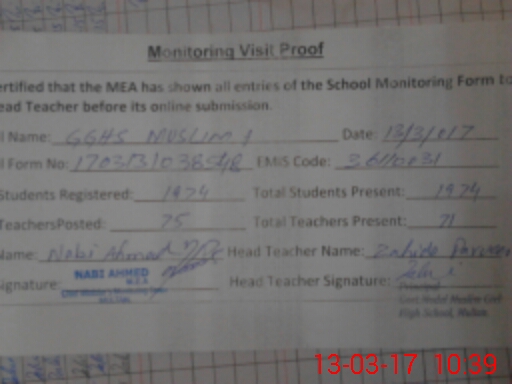 | EMIS Code: 36110031 | Name of School: GGHS MUSLIM PUL MOJ DARYA | |||