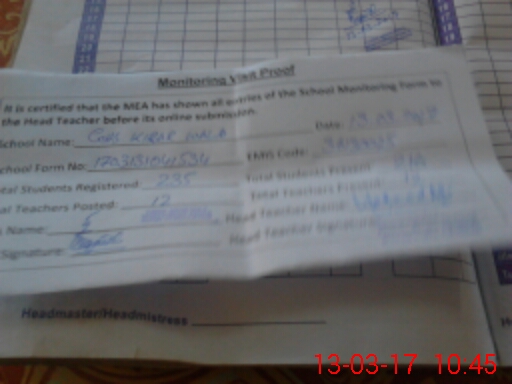 | Certified that this School was Inspected by the Undersigned MEA/DMO Today and the Information Stated Above is as Per Record. | |||||