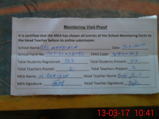 | Attendance Register | Head Teacher | MEA with School | Visit Proof |