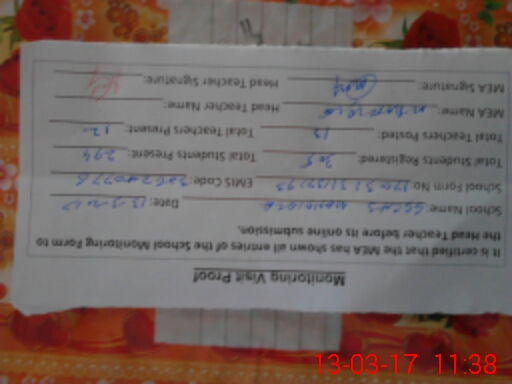 | Attendance Register | Head Teacher | MEA with School | Visit Proof |