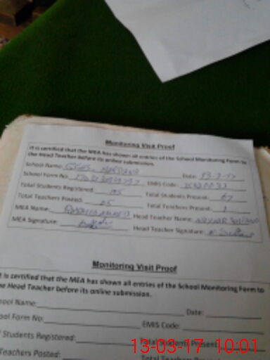 | Attendance Register | Head Teacher | MEA with School | Visit Proof |
