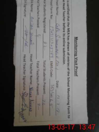 | Certified that this School was Inspected by the Undersigned MEA/DMO Today and the Information Stated Above is as Per Record. | |||||