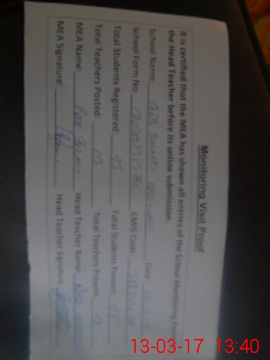 | Certified that this School was Inspected by the Undersigned MEA/DMO Today and the Information Stated Above is as Per Record. | |||||