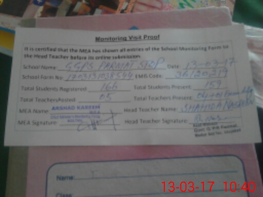 | EMIS Code: 36120219 | Name of School: GGPS PARMAT STOP MUZA HALALWAJA | |||